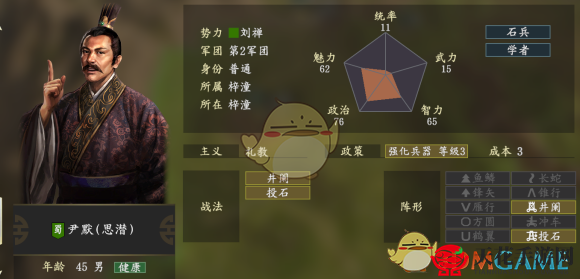 《三国志14》尹默属性剖析,五维数据详览