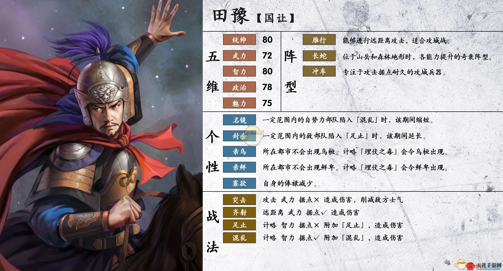 《三国志14》田豫角色特性详析